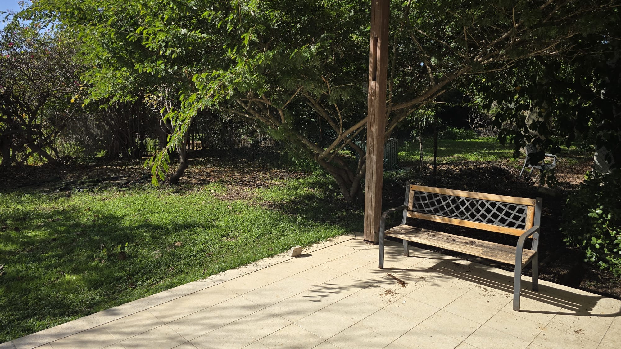 הנכס נהנה מגינה גדולה עם עצים בוגרים וייחודיים. גב הבית גובל בגינה ציבורית ירוקה ויפהפייה.